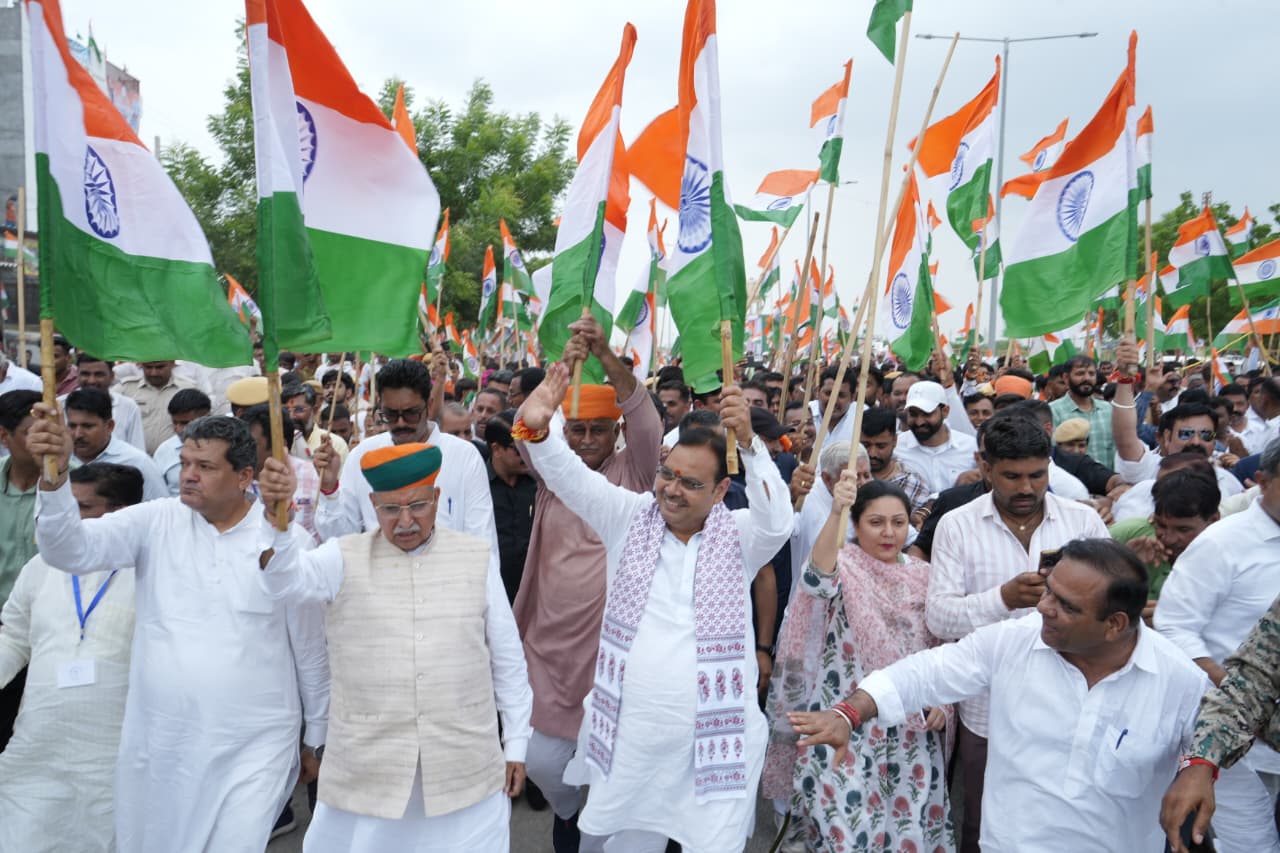 नाल तिरंगा यात्रा में मुख्यमंत्री के साथ केंद्रीय कानून मंत्री श्री अर्जुन राम मेघवाल, खाद्य एवं नागरिक आपूर्ति मंत्री श्री सुमित गोदरा, श्री विश्वकर्मा कौशल विकास बोर्ड अध्यक्ष श्री रामगोपाल सुथार,खाजूवाला विधायक डॉ विश्वनाथ मेघवाल, बीकानेर पूर्व विधायक सुश्री सिद्धि कुमारी, बीकानेर पश्चिम विधायक श्री जेठानंद व्यास, श्री डूंगरगढ़ विधायक श्री ताराचंद सारस्वत, कोलायत विधायक श्री अंशुमान सिंह भाटी, धोद विधायक श्री गोवर्धन वर्मा, पूर्व विधायक श्री अभिनेष महर्षि, श्री श्याम पंचारिया, श्रीमती सुमन छाजेड, श्री बिजेंद्र पूनिया, श्री दशरथ शेखावत,पूर्व विधायक श्री बिहारी लाल बिश्नोई , श्री चंपा लाल गेदर,श्री अविनाश जोशी,सरपंच संघ के जिला अध्यक्ष श्री तोलाराम कूकना, श्री शिवराज बिश्नोई,श्री संतोषानंद महाराज आदि रहे मौजूद