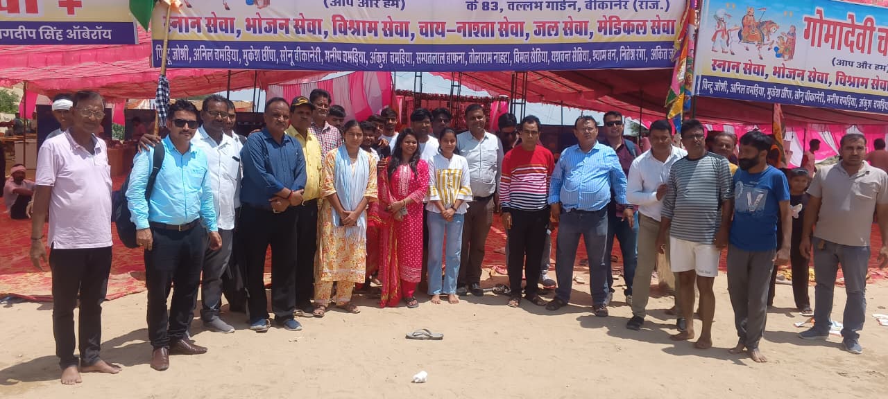 लोकदेवता बाबा रामदेव जी के पावन धाम रुणिचे की ओर जब हजारों श्रद्धालु 500 किलोमीटर से अधिक दूरी तय करते हुए पद यात्रा पर निकलते हैं, तो वह केवल एक यात्रा नहीं होती, बल्कि आस्था का अभूतपूर्व सैलाब बन जाती है। सैकड़ों किलोमीटर लंबे इस मार्ग पर लोकदेवता बाबा रामदेव के चरणों में समर्पित भाव से 20-20 फुट ऊँची धर्मध्वजाएँ लहराती हैं और भक्तजन गीत, भजन और जयकारों के साथ वातावरण को रामदेवमय कर देते हैं। इन्हीं पद यात्रियों की सेवा और सुविधा के लिए स्व. गोमा देवी चमड़िया चैरिटेबल फाउंडेशन द्वारा, रोटरी क्लब बीकानेर रॉयल्स के सहयोग से, विशाल सेवा शिविर का आयोजन किया गया है।