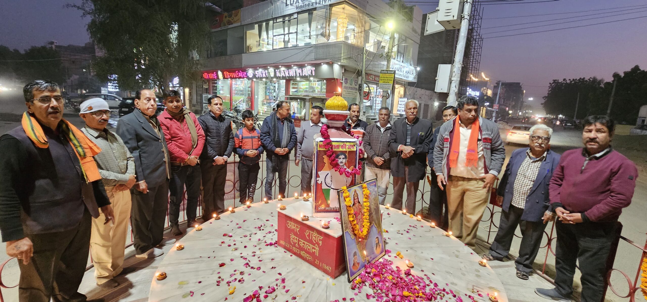 NEWS BHARTI BIKANER ; – भारतीय सिन्धु सभा महानगर, सिन्धी सेन्ट्रल पंचायत, संत कंवर राम सिंधी समाज ट्रस्ट, जय झूलेलाल सिंधी युवा मंडल, मातृ शक्ति सत्संग मंडली के संयुक्त तत्वावधान मे आज दिनांक 21.01.2025 मंगलवार को व्यास काॅलोनी के हेमु कालाणी सर्किल पर अमर शहीद के बलिदान दिवस पर श्रृद्धांजली का कार्यक्रम रखा गया। जिसमें समाज के वरिष्ठ व गणमान्य सदस्यों द्वारा हेमु कालाणी व भारत माता के चित्र पर श्रृद्धा सुमन अर्पित किये गये। अशोक खत्री व अशोक आसवानी ने हेमु कालाणी की स्मृति में देशभक्ति गीत गाये। देश भक्ति नारों से पूरा सर्किल गूंजायमान हो उठा। सिंधी सेन्ट्रल पंचायत के अध्यक्ष कमलेश सत्याणी, किशन सदारंगानी, हासानंद मंगवानी, टीकम पारवानी व वरिष्ठ सदस्य श्याम आहूजा ने अमर शहीद हेमु कालाणी के जीवन चरित्र का परिचय देते हुए उनके बताये मार्ग का अनुशरण करने को कहा।