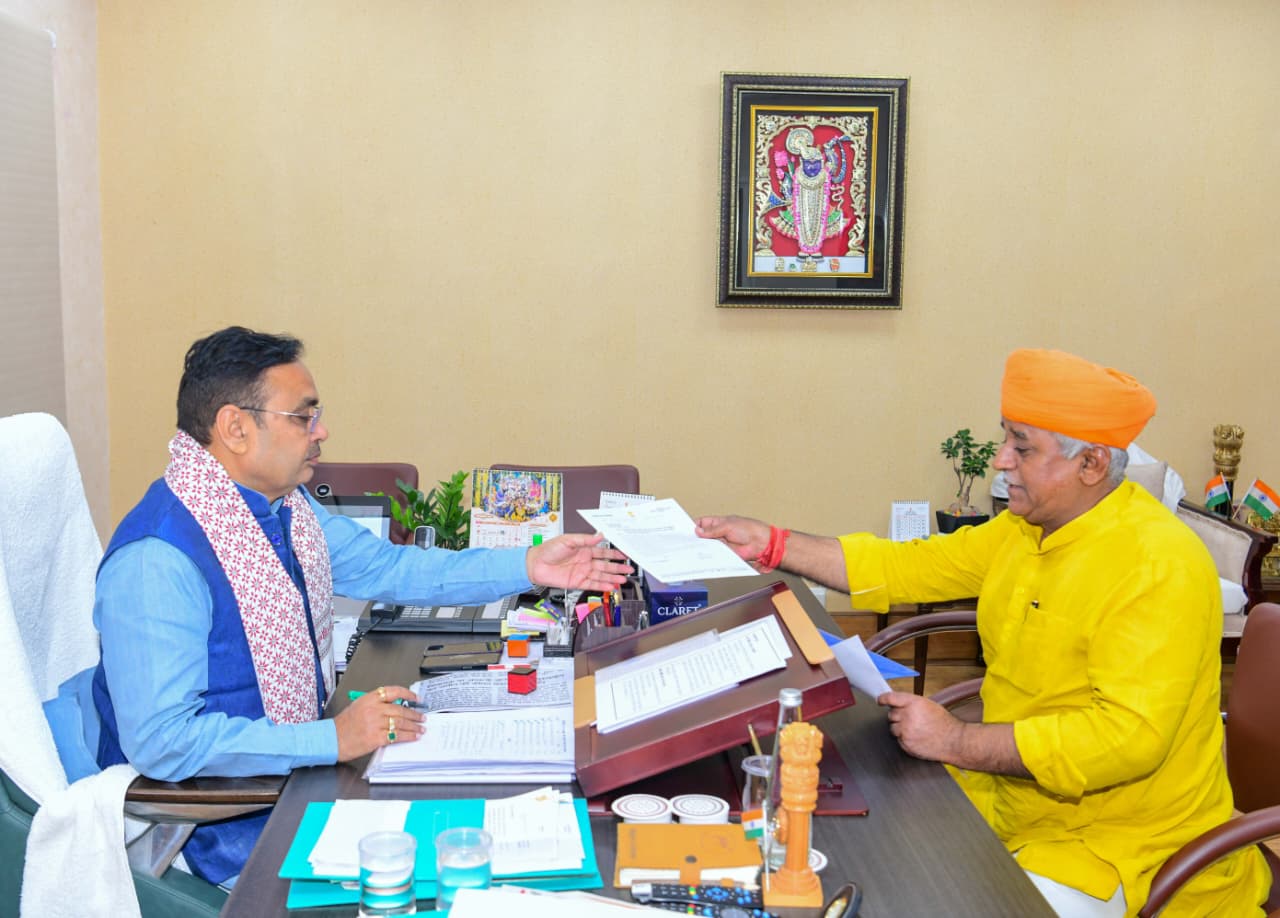NEWSBHARTIBIKANER.COM बीकानेर, 21 नवम्बर। बीकानेर (पश्चिम) विधानसभा क्षेत्र विधायक श्री जेठानंद व्यास ने शुक्रवार को जयपुर में मुख्यमंत्री निवास पर मुख्यमंत्री श्री भजन लाल शर्मा से शिष्टाचार भेंट की। इस दौरान विधायक ने जिला अस्पताल में बेड बढ़ाने सहित यहां की व्यवस्थाओं में सुधार, रेल फाटकों की समस्या के स्थाई समाधान सहित बीकानेर के विकास से जुड़े विभिन्न मुद्दों पर चर्चा की। उन्होंने प्रदेश के आगामी वित्तीय वर्ष के बजट के संबंध में कुछ महत्वपूर्ण बिंदुओं के बारे में बताया तथा विकास से जुड़े कार्यों को बजट में शामिल करने का आग्रह किया।