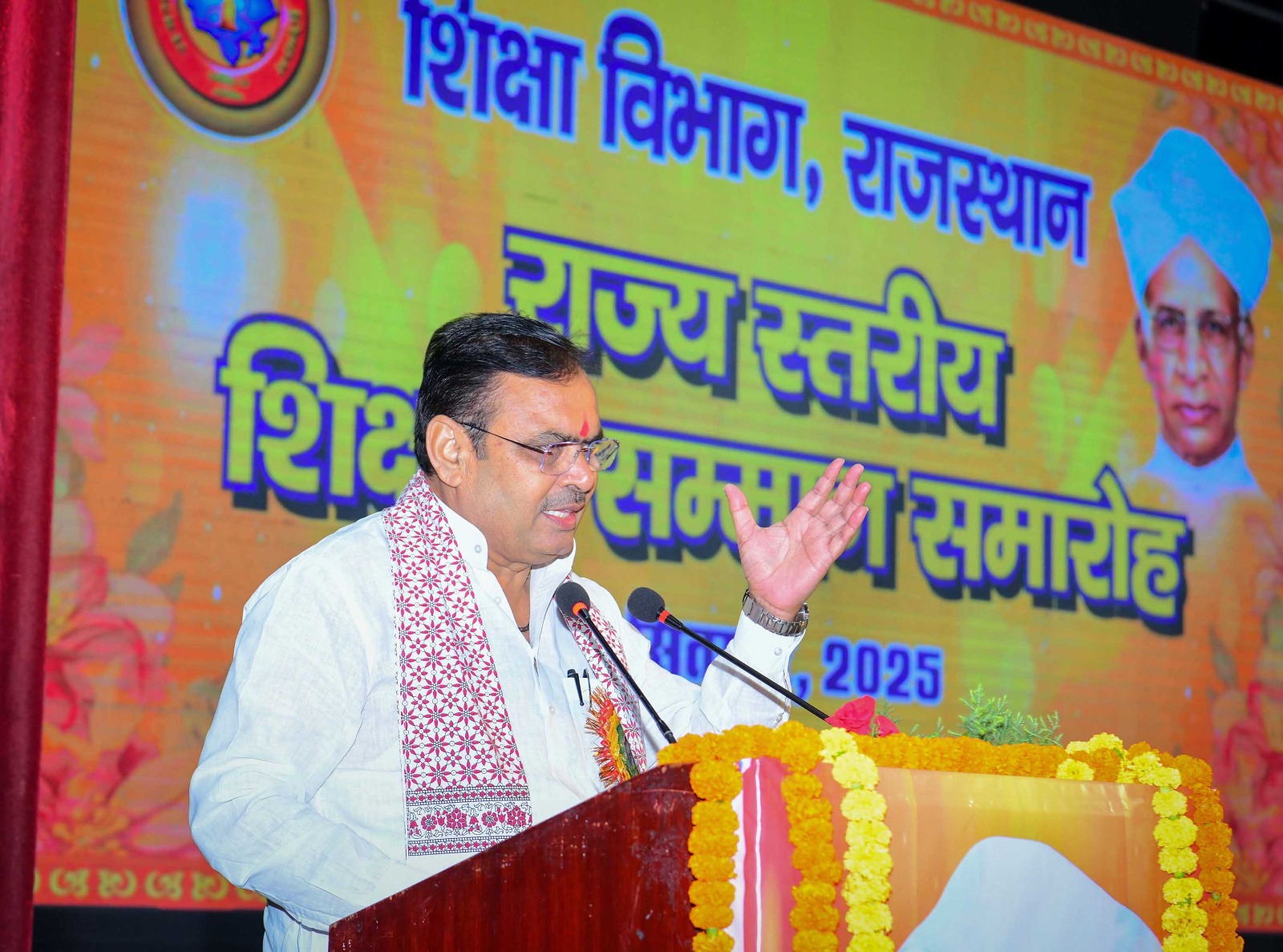 श्री शर्मा शुक्रवार को बिड़ला ऑडिटोरियम में आयोजित राज्य स्तरीय शिक्षक सम्मान समारोह को संबोधित कर रहे थे। उन्होंने कहा कि यह कार्यक्रम केवल एक दिन का कार्यक्रम नहीं है यह हमारी नीति है। महान शिक्षाविद् डॉ. सर्वपल्ली राधाकृष्णन को नमन करते हुए उन्होंने कहा कि डॉ. राधाकृष्णन का मानना था कि शिक्षा का उद्देश्य ज्ञान प्राप्त करने के साथ-साथ जीवन को समझना और उसमें मूल्यों का समावेश करना है। उन्होंने कहा कि शिक्षा मनुष्य और समाज का निर्माण करने वाली शक्ति है तथा इसका उद्देश्य व्यक्तित्व का संपूर्ण विकास करना है।